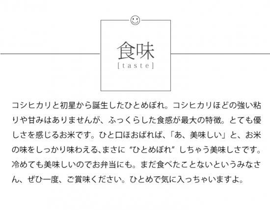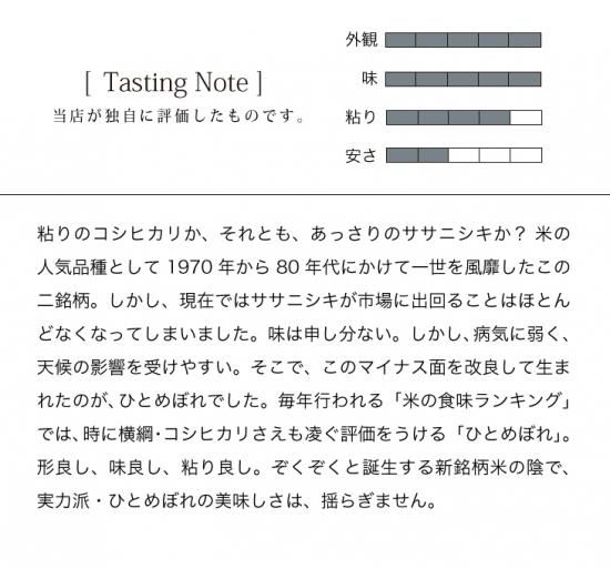 「お米がきれいで、味と香りが良く、出会ったとたんに『ひとめぼれ』するような美しくおいしいお米」という意味で名付けられたひとめぼれ。味わえばわかる、ひとめでわかる、ひとめぼれの美味しさを、どうぞお試しください。