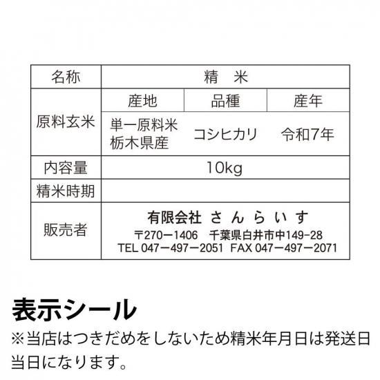 米 お米 10kg こしひかり 令和7年 新米 栃木県産 送料別 sb-koshi-10k