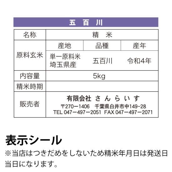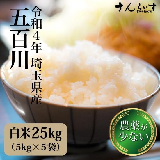 米 25kg お米 五百川 白米(5kg×5袋)埼玉県産 令和4年 新米 農薬が少ないお米送料別途 sb-gohyakugawa-25k